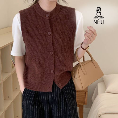 Áo gile cổ tròn gài nút nữ- A22