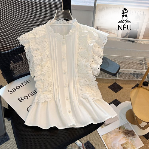 Áo sơ mi cổ yếm xếp viền ren- A20